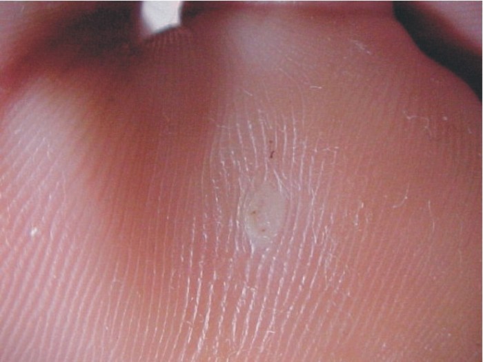 Бородавки, образующиеся на участках, подверженных трению и сдавливанию, особенно болезненны. Расположенная вокруг кожа в большинстве случаев покрывает бородавку целиком, так что на первый взгляд можно предположить локальный гиперкератоз или даже мозоль (clavus). Характерным признаком бородавки является отсутствие кожного рисунка. Однако бородавка становится заметной лишь после того, как ороговелость снимается. Поэтому при диагностике нужно действовать с особой тщательностью. Многочисленные черно-коричневые точки или полоски, вызванные закупоркой поверхностных капилляров, нередко можно распознать сразу. Их можно удалить, но при этом они вызывают многочисленные точечные кровотечения – что является особой приметой «активности» данной бородавки. Если подошвенные бородавки появляются в большом количестве, то речь идет о «мозаичных бородавках».